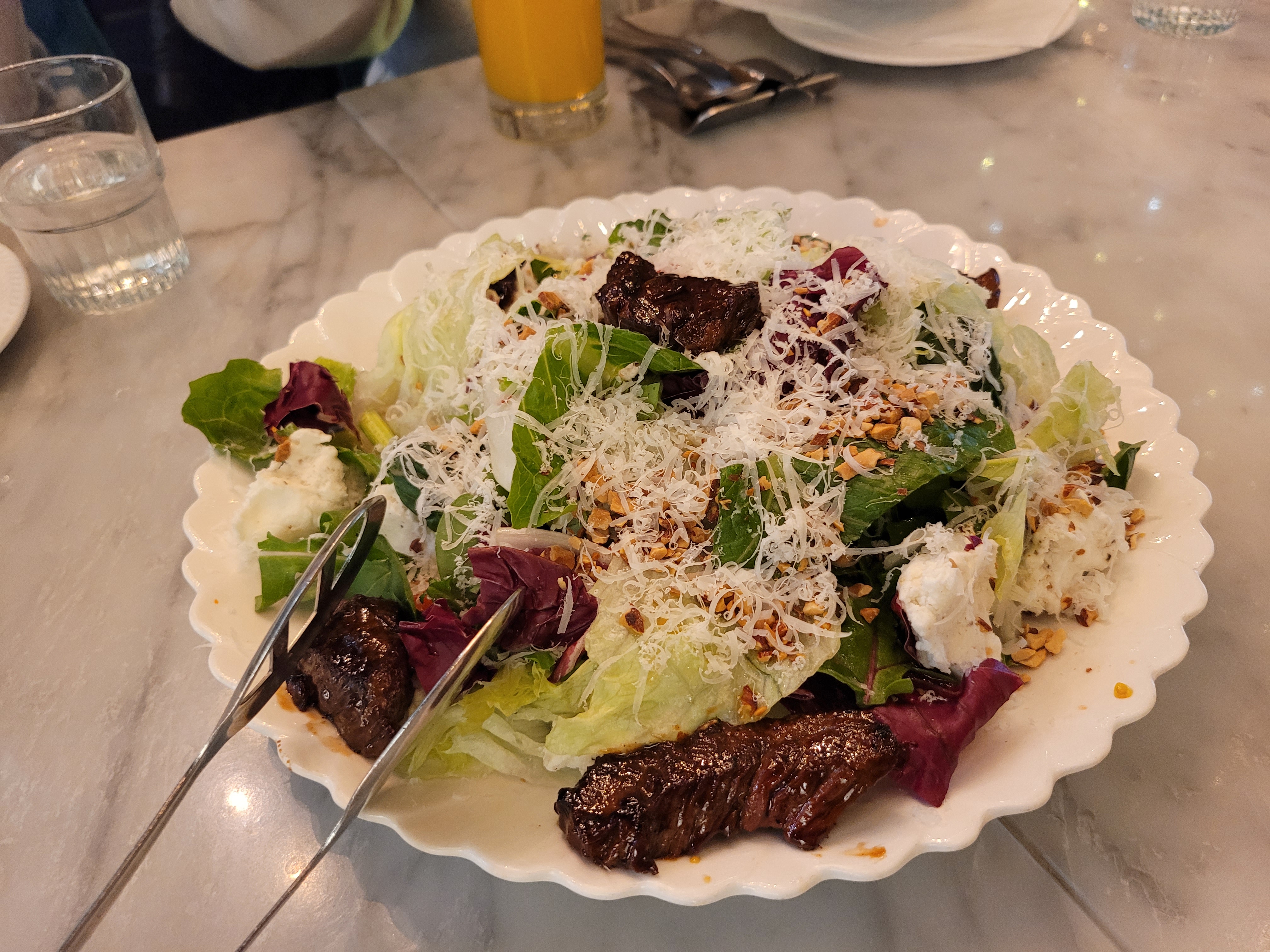 리코타 치즈와 스테이크, 신선한 야채, 견과류에