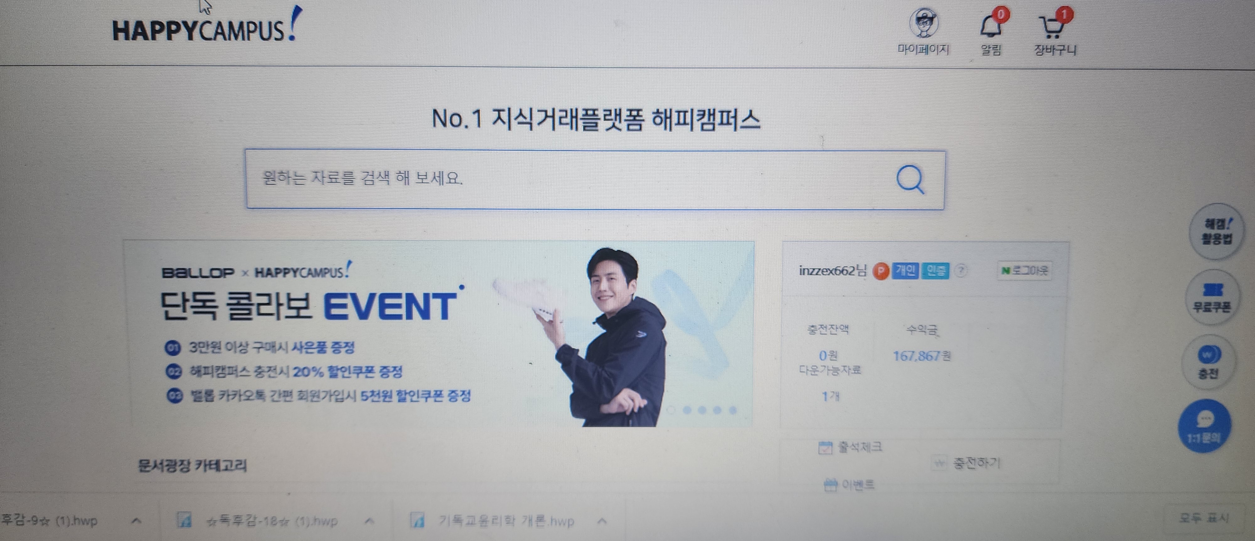 해피캠퍼스는 자료구매보다 소소한 수입을 올리기 위해 활용중인 사이트이다.